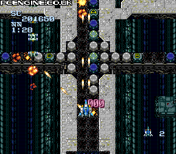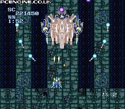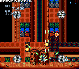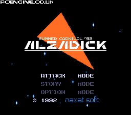 Available at one of the yearly competitions where gamers compete against each other, Alzadick is not a full game, but a brief score-based shooter in the style of the 5-minute caravan modes in Hudson's 'Soldier' series. The usual collect-a-weapon system applies here, and there are also story modes which are nothing more than the score attacks with a bit of background text (in Japanese) to explain what is going on.