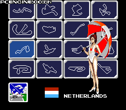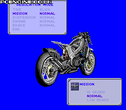 Based on a manga, Bari Bari Densetsu is something of a rare breed on the Engine - a motorcycle racing game. You can pretty much guess how it works - there's a World GP mode where you have to compete in a variety of races in order and a Travel mode that let's you pick a track of your choice. Also to consider is the gubbins that make up your bike, such as tyres, engine, brakes etc as these have an effect depending on the type of course and the weather conditions. Races are started with a qualifying lap that lets you get the feel of the track, followed by the race proper. You are then placed and can hopefully move on to the next country.