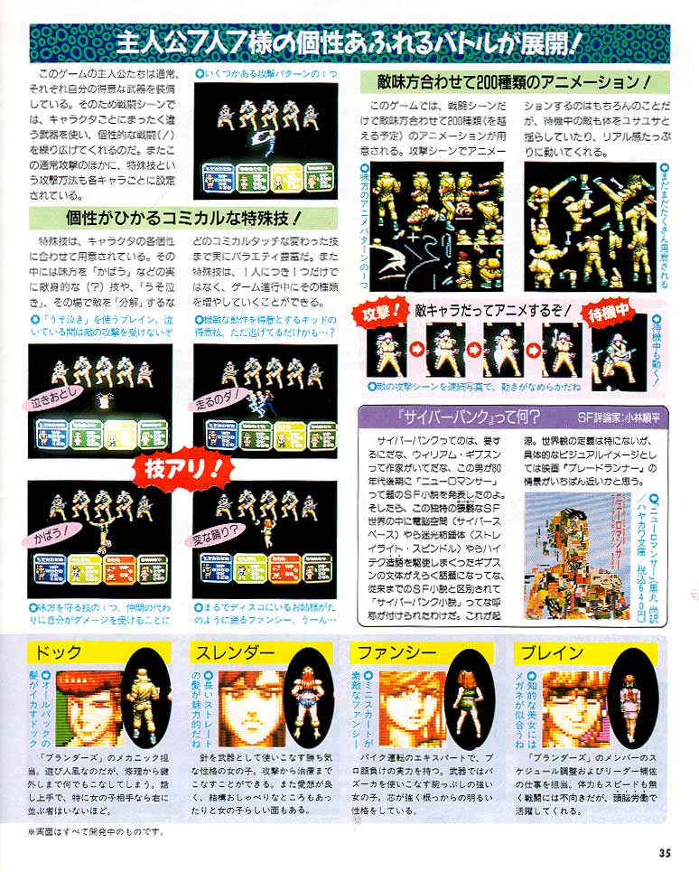 Taking a break from the typical fantasy style, Blunders is a cyberpunk, sci-fi role playing game. Gameplay is from the stardard overhead viewpoint and battle scenes are turn based and random. This game is unreleased.