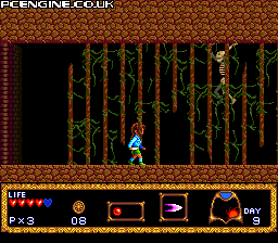 A platform game with hints of both Indiana Jones and Ghouls 'n' Ghosts, Hiho Densetsu puts you in the shoes of Chris, a young woman travelling the globe. Deadly enemies burst from the ground, traps and moving platforms must be negotiated and undead skeletons leap down from the ceiling and all you have to protect yourself is a short knife. But don't fear, as collecting coloured orbs increases the power of your weapon, allowing bolts of energy to be fired from the tip. Each level is divided into stages, but keep an eye on the sky as you only have a short amount of time to complete each one.