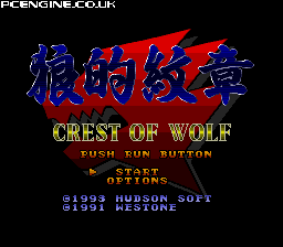 Overview One of the few scrolling beat 'em ups on the PC Engine, Crest of Wolf will be very familiar to fans of Final Fight. The standard rescue-the-girl plot line is here, giving you a choice of two characters - Hawk and Tony. The moves are fairly typical for a game of this genre, with normal punches, grab-and-throw when you get close, and a life sapping special attack for those times when you are feeling a little overwhelmed by the bad guys. Each level has many sub-sections and ends in a boss fight.