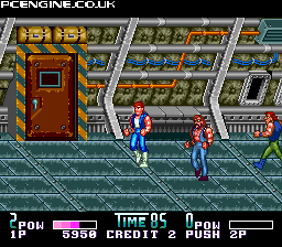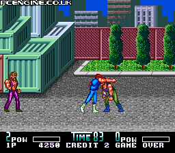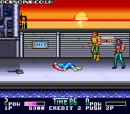 A Naxat conversion of Technos' brilliant and popular Double Dragon II. Not quite up to par with Naxat's ports of Technos' other games, but then again it's not a straight up port. Naxat has re-done some things specific to this version. There's an anime intro with some hefty story that was told very simply in the NES version as text, and it's fairly well done, although it's nothing superb. Nice redbook audio and familiar tracks abound, with heavy-hitting sound effects a far cry from the NES and Arcade versions. The graphics are completely original, although they don't look the best. The backgrounds look good, taking set pieces from both the NES and Arcade versions, but the sprites look...well...funky and animate strangely. Gameplay is identical to the NES version, with some retouched hit detection and timing, amounting to what is the easiest version to pull off moves but sometimes the most frustrating in terms of who-hit-what nit picking. The baddies are a lot smarter and tougher over the NES version as well, although not nearly as cheap as the Arcade version. 4/5 stars, and well worth the 2-player co-op play, as baddies can grab hold of you from behind while another pummels you to doom in this version.