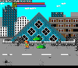 An action adventure with push-screen scrolling, you must run, jump, climb and shoot your way through a destroyed city and caves fighting mutants.