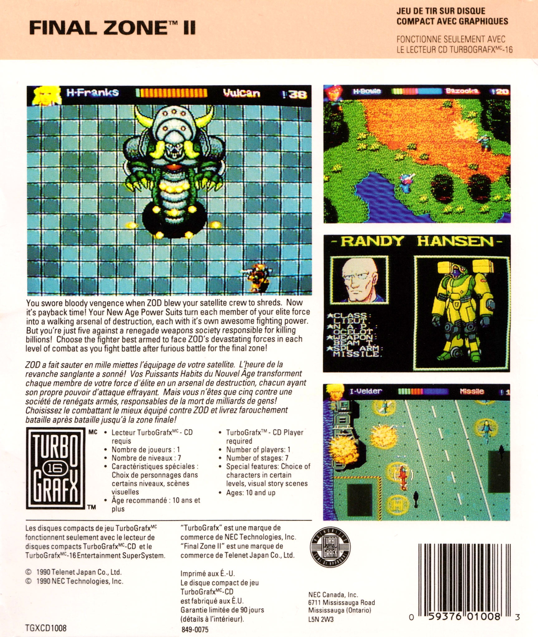 FINAL ZONE II ファイナルゾーンII MAKER: RENOVATION / TELENET RELEASE DATE: 23 MARCH 1990 / 1990 STYLE: ACTION FORMAT: CD-ROM RATING: