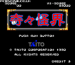 KIKI KAIKAI 奇々怪界 MAKER: TAITO RELEASE DATE: 27 MARCH 1990 STYLE: ACTION FORMAT: HUCARD RATING: