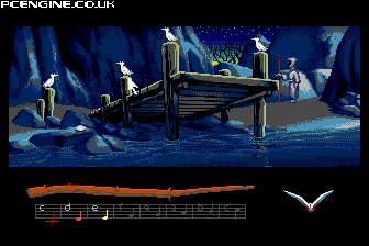 Graphically, LOOM is colorful, but sparse and somewhat grainy as it was a port of an older PC EGA game. It is also nearly silent SFX-wise save for the score from Tchaikovsky's ballet, “Swan Lake” ever playing in the background, which is just lovely.