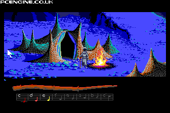 Comment Consider this an interactive book where you have to keep a sharp eye out for graphical clues to help you turn the page and get more story. Unlike other point-and-click games where you keep an inventory and try to figure out what to use where, all Bobbin has is a musical staff. Certain items or areas will give you notes in sequence that you must use for action or events (WRITE THEM DOWN). Some songs are only used for their specific purpose, but some can be played backwards to do the opposite, like ‘open’ played backwards is ‘close’. Players must search every nook and cranny and experiment to figure out all the little tricks and things to do.