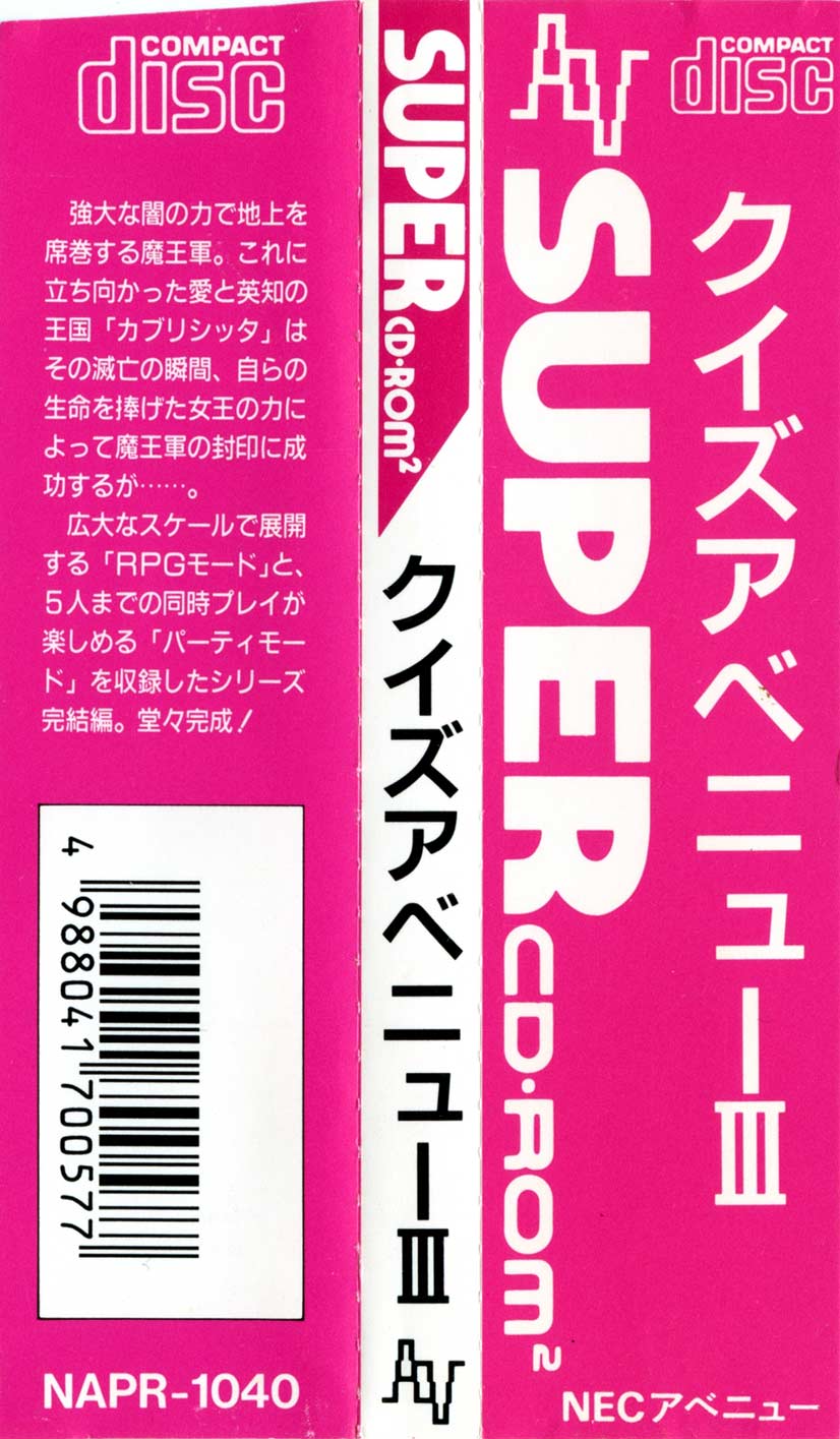 QUIZ AVENUE 3 クイズアベニュー3 MAKER: NEC AVENUE RELEASE DATE: 25 NOVEMBER 1994 STYLE: QUIZ FORMAT: SUPER CD-ROM RATING: UNRATED