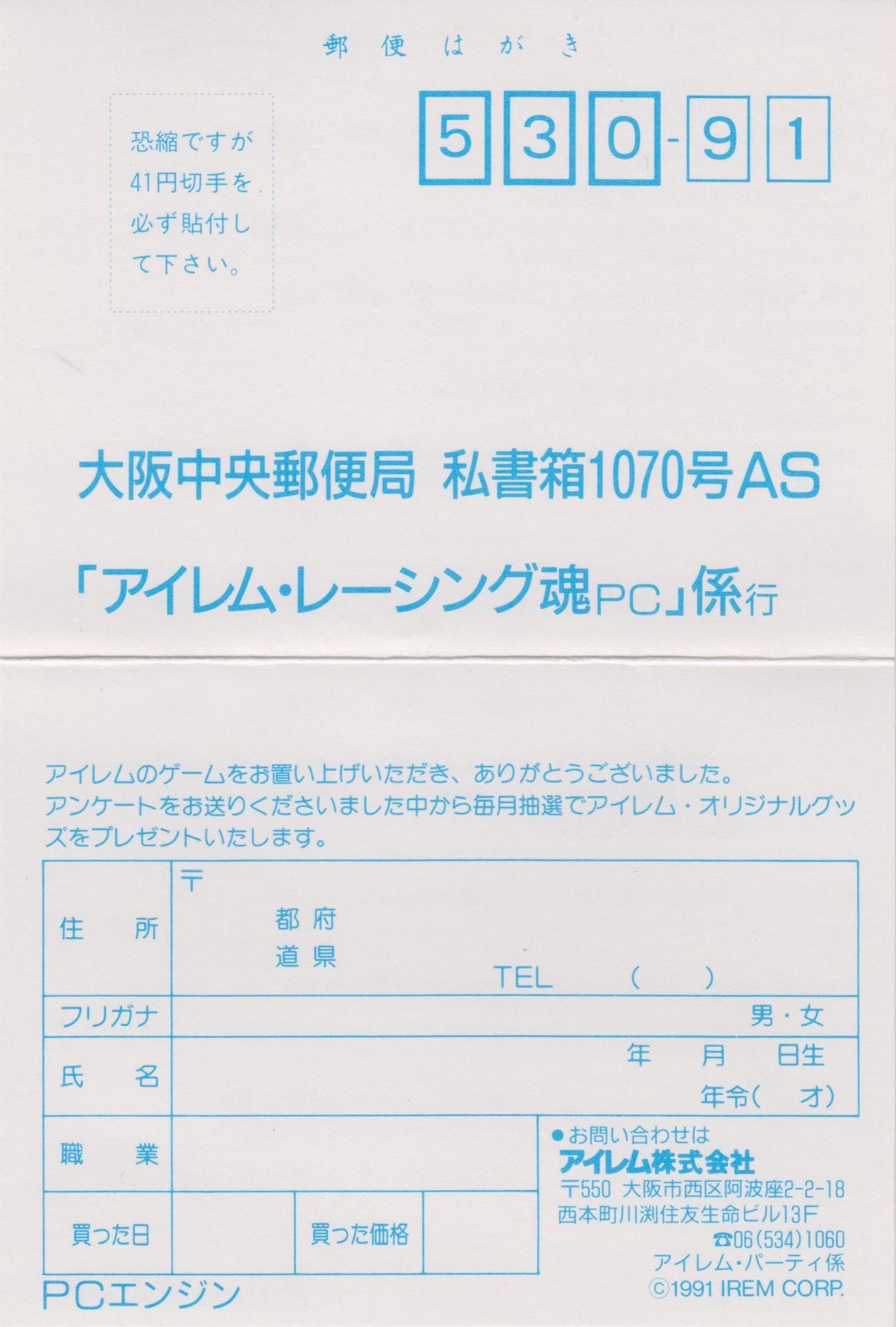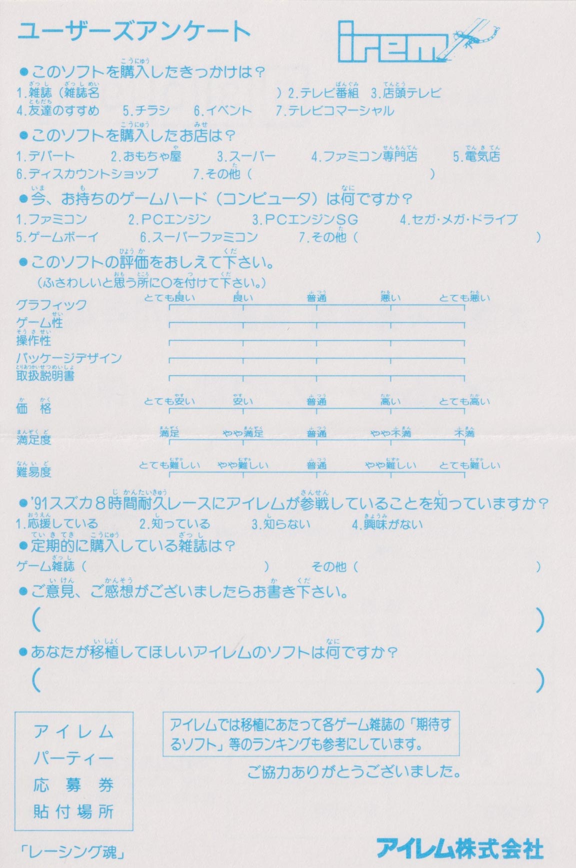MAKER: IREM RELEASE DATE: 19 JULY 1991 STYLE: DRIVING FORMAT: HUCARD RATING: UNRATED