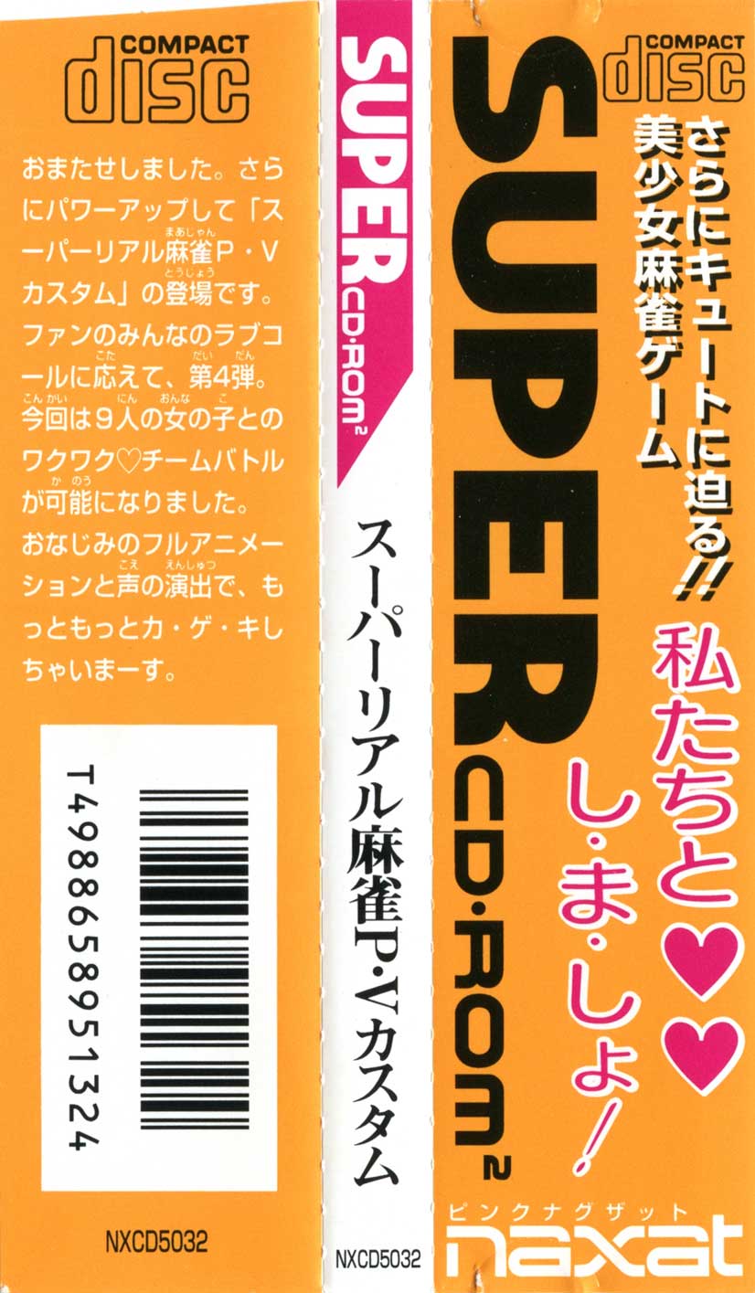 SUPER REAL MAHJONG P V CUSTOM スーパー リアル麻雀P. V カスタム MAKER: NAXAT / SETA RELEASE DATE: 3 MARCH 1995 STYLE: MAHJONG FORMAT: SUPER CD-ROM / ARCADE CARD CD-ROM RATING: UNRATED