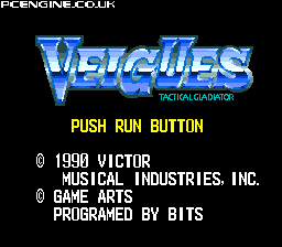 VEIGUES TACTICAL GLADIATOR ヴェイグス TACTICAL GLADIATOR MAKER: VICTOR MUSICAL INDUSTRIES / GAME ARTS RELEASE DATE: 29 JUNE 1990 / 1990 STYLE: ACTION FORMAT: HUCARD RATING: UNRATED
