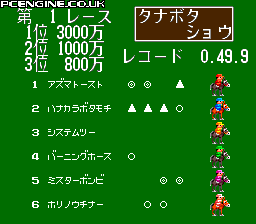 WORLD JOCKEY ワールドジョッキー MAKER: NAMCO RELEASE DATE: 20 SEPTEMBER 1991 STYLE: SPORT FORMAT: HUCARD RATING: UNRATED