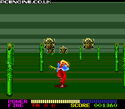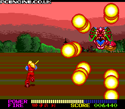 Trying to be Space Harrier crossed with Ninja Spirit, this game is an unique concept but fails on all counts. The action is often confusing and messy, forcing you to keep stopping and starting which seems very counter-intuitive. But you soon learn that this is the only way to make any progress. Making hits on the enemies when you don't have a shurikens seems more like a matter of luck than anything else, so you will probably spend much of this time just avoiding everything rather than getting in on the action. Unfortunately, the game just doesn't work. You have to give them some credit for the interesting idea, but it needs to be a whole lot slicker than this to be successful.