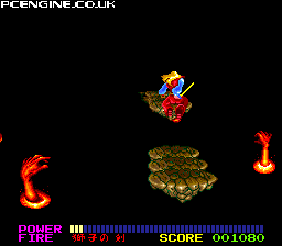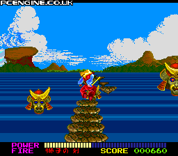 Take control of a skilled samurai warrior as you confront all manner of evil spirits in an oriental setting. The gameplay involves running into the screen, much like Space Harrier, but with the freedom to stop and run back. But it isn't just running and slashing wildly with your sword - there are also sections where you can (or must) jump onto floating platforms as you progress (particularly stage three where contact with the water below diminishes your health. Along the way there are various statues to destroy, each leaving a present behind which gives you health or those essential shurikens that allow you to hit enemies from a distance.