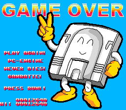 The year is 6280. In the years following the Great Flush, the HuCOUNCIL decided to preserve all known PC Engine games and hardware in a secret vault within Mt. Fuji. They encased the dormant volcano in an air-tight dome and suspended it above the barren, lava filled wastelands that Earth had become. The evil Nintendoids and Segatrons were not so lucky. All of their items were lost. In a jealous rage, they have joined forces, intent on destroying the PC Engine vault!