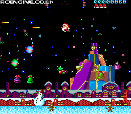 Jealous of all the time her husband spends drinking sherry and eating biscuits in other people's houses, Mrs Claus decides the only way to be rid of her overweight husband is to put an evil spell on the Christmas decorations and let them do the dirty work for her. As Santa, you must destroy these festive fiends, but beware; evil baubles are lying in wait, candy canes attack without warning and scented candles are out to burn your beard off!