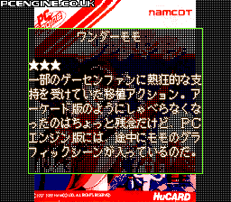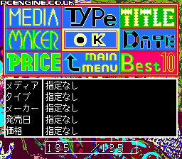 The PC Engine section is a nice little feature that is essentially a database of current PC Engine games. You can either select the game by title or use various filters (maker, type, price etc) to narrow down your search. Each game has a bunch of information, including details on the story and company contact information. Also, there is a 'Best 10' where Eguchi, a slob from Gekkan PC Engine Magazine, counts down his top ten games on the system (I can't say I was surprised at the number one pick).