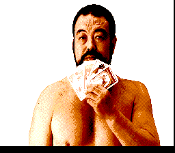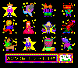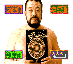 Want to find out what the future holds? Then what better way than to ask a bearded topless Japanese man? Simply select your star sign and the subject you are enquiring about and he gives you a nice chit-chat with some full screen pictures, nipples included. Feel free to make up your own captions for the pictures, especially the third down on the left.