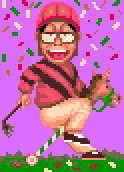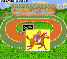 Another story-based item with minimal user input. Revolving around the world of horse racing, the goal of this seems to be to marry a horse in France or something (I could be wrong about that). You sit and mindlessly watch the plot unfold for the most part, and a few times you are given the choice of a yes/no. That's about as deep as it gets. Occasionally, some weird guy with over-active eyebrows will pop up at the bottom and talk at you, but I've really no idea what he's saying. Below are some screens of the drawings used, but if you're really bored, you can check out the videos of me being full of win.