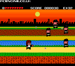 Kamen Victor: a fast-paced rollercoaster of a game not seen since the days of the Vic 20. This little beauty has you running left to right, punching and kicking the enemies as they leap at you, throwing shurikens. You don't even have to push a button to attack, your fist or foot is always sticking out so all you need to do is make contact from the front. Once you defeat the required number of enemies (shown top right - any you miss are added again to the counter) then you reach the boss stage. Here you have to push the buttons as displayed on screen to transform and take him down for good. As you can see from the video, I'm a bit rubbish. It's very, very basic, but on the upside, it does have more parallax scrolling that CD Denjin. So take that Hudson Soft.