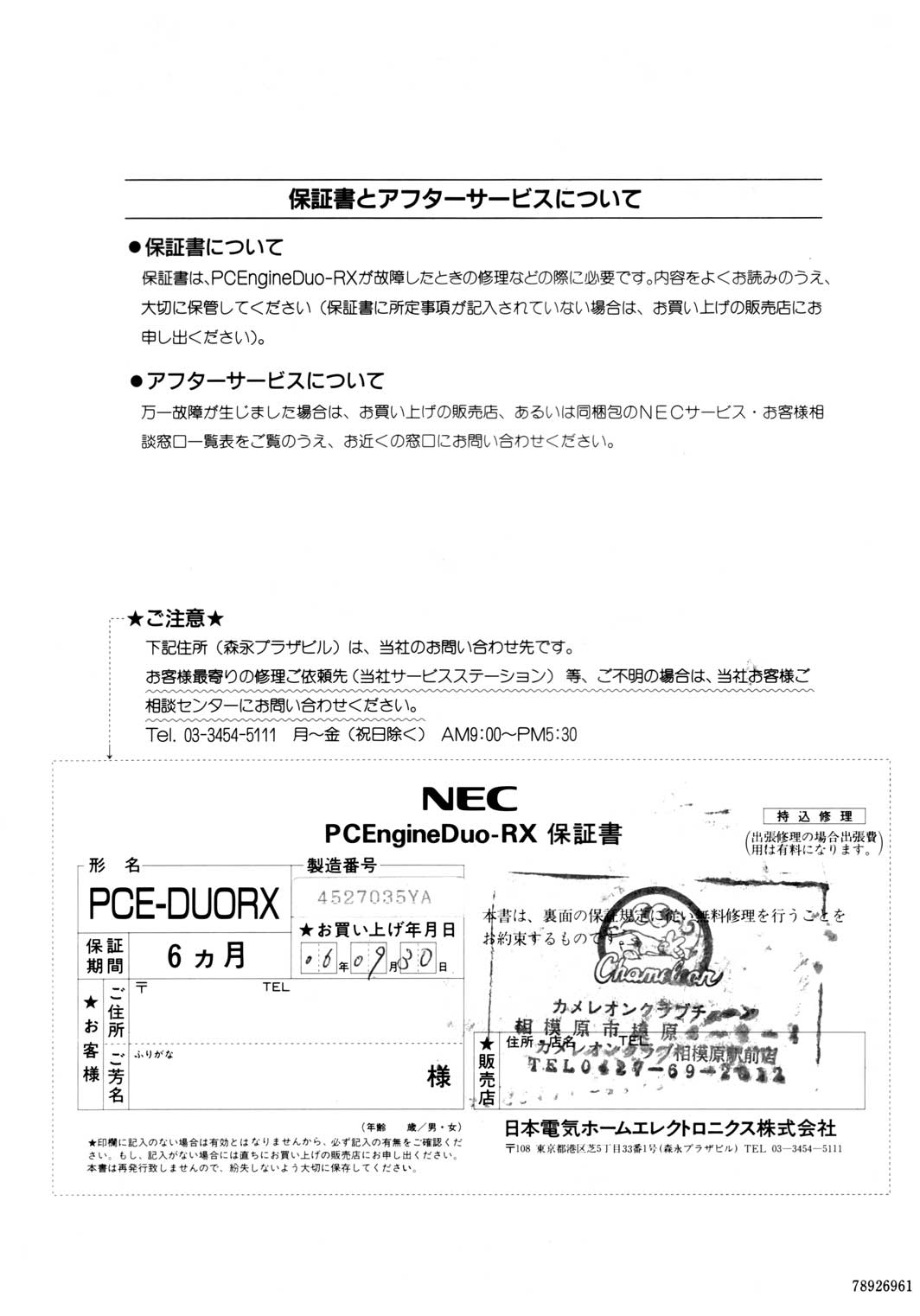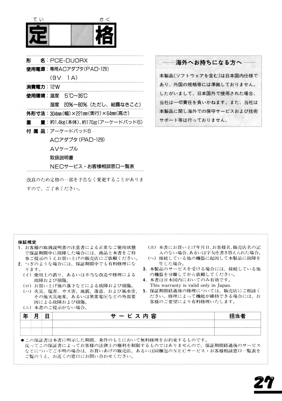 OMAKE PC ENGINE DUO-RX USER MANUAL